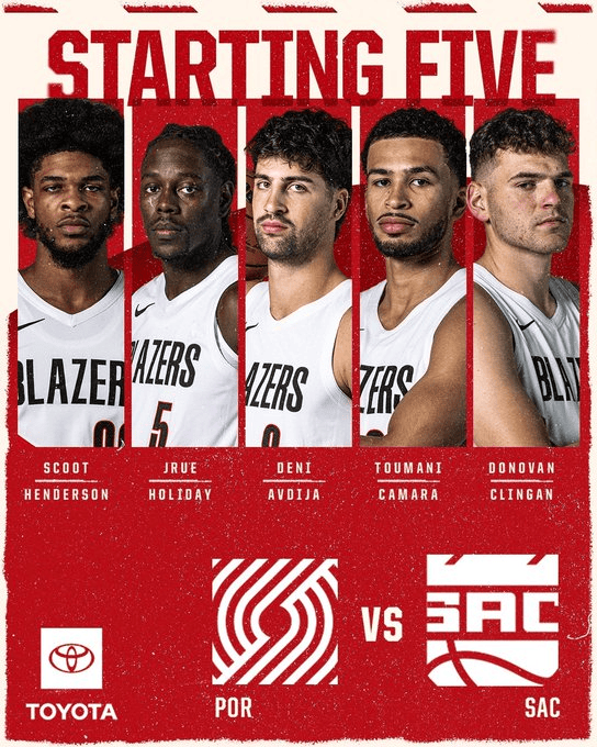 赛前,开拓者官方更新了比赛的首发阵容: